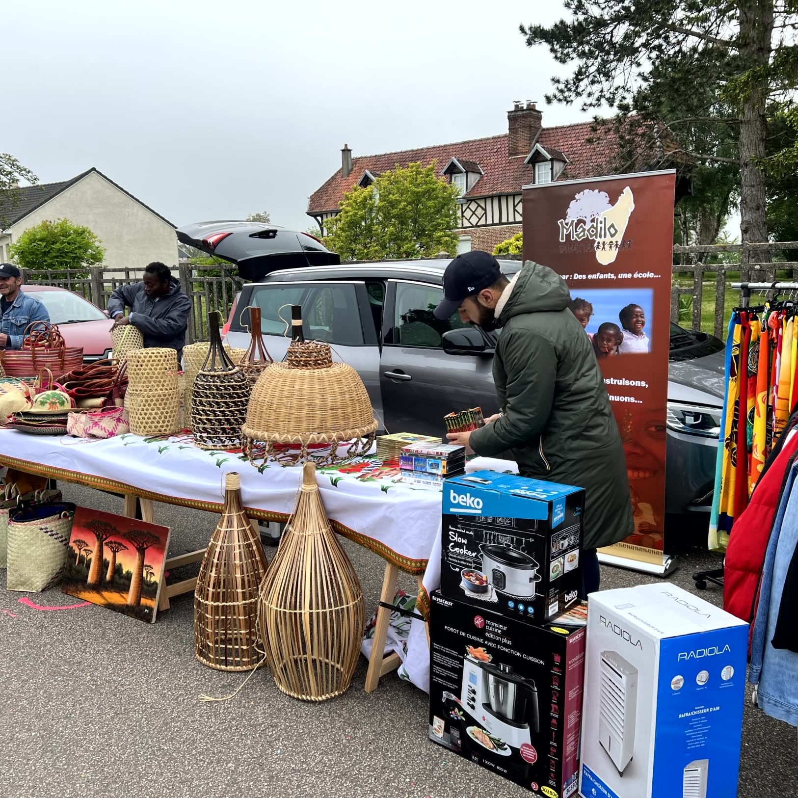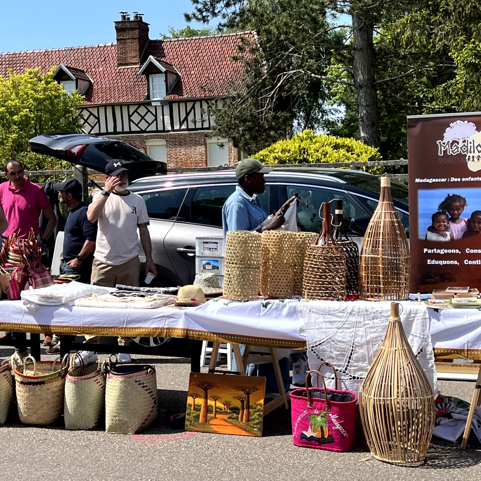 Ce fut l’occasion de rencontrer, d’échanger, de renseigner sur l’association MADILO mais aussi de vendre de l’artisanat Malgache pour financer nos actions. Lampes en raphia, sac tressés, peintures, nappes, tissus, mais aussi, cannelle, poivre sauvage et bien sûr vanille !!!